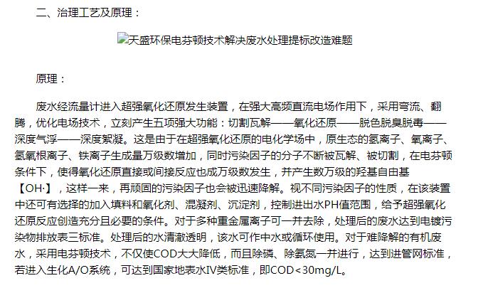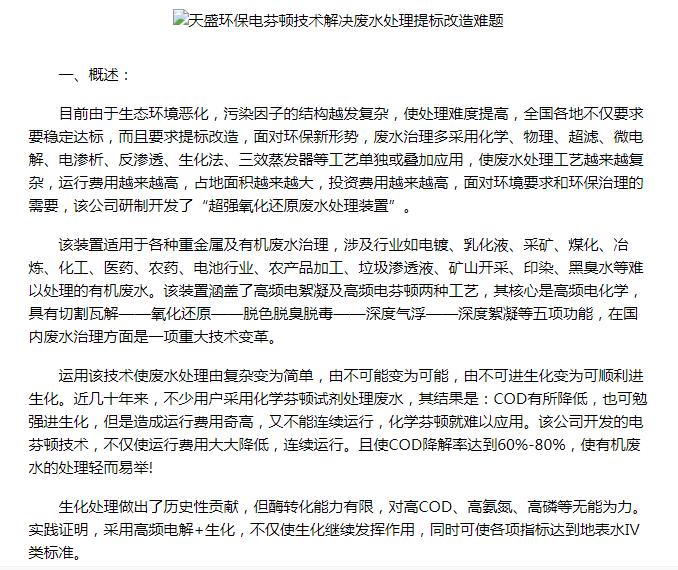 河南網(wǎng)轉載:天盛環(huán)保電芬頓技術解決廢水處理提標改造難題
